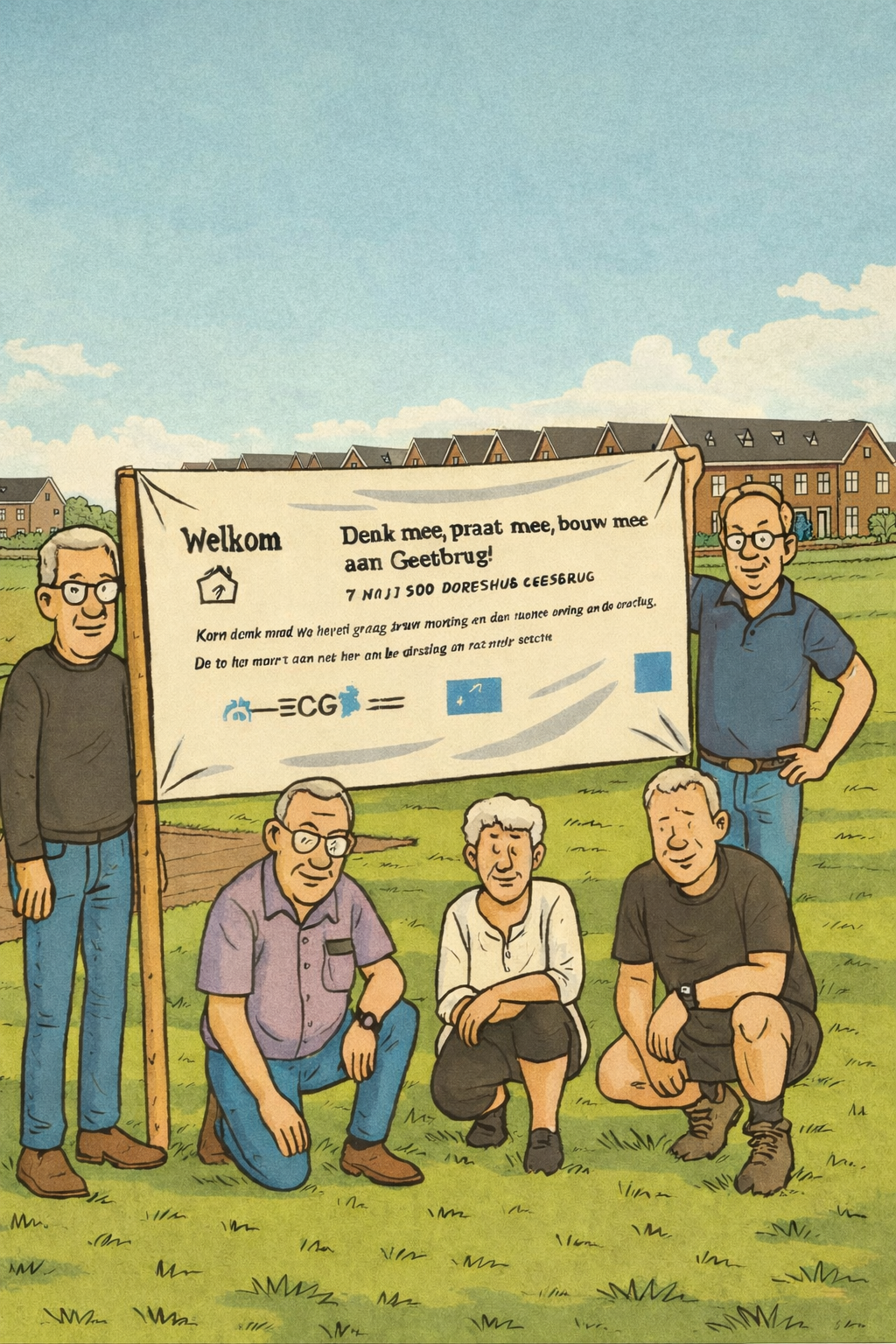 Of je nu jong bent of oud, starter of levensgenieter – iedereen is welkom om mee te denken over de toekomst van wonen in Geesbrug. Doe je mee?